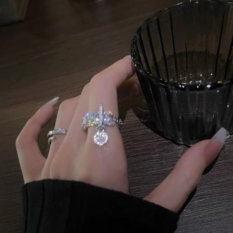 Light Luxury High-End Zircon Pendant Ring, Female Cold Wind Niche Design Fashion Personality Open Index Finger Ring