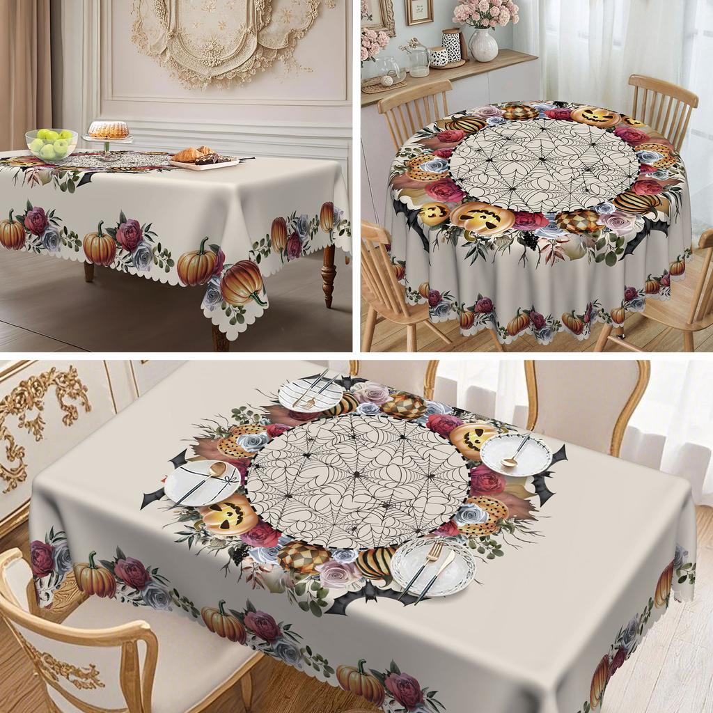 1Pc Halloween Themed Tablecloth - Ghost Pumpkin, Spider Web, Bat And Haunted House Pattern Design Tablecloth