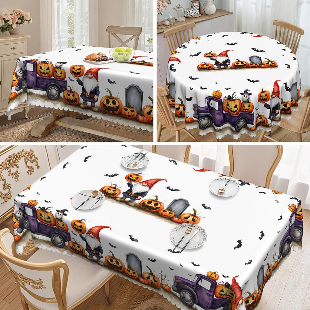 Halloween Tablecloth, Ghost Party Decoration With Goblins, Pumpkins And Cars - Polyester Tablecloth