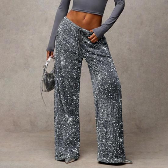 Všestranné možnosti stylingu: Tyto kalhoty se širokými nohavicemi se hladce hodí k různým topům včetně sak, košil, triček a halenek.. Jejich jedinečný flitrový detail pozvedá každodenní outfity a zároveň zůstává vhodný pro ležérní i elegantnější vzhled, což z nich činí nezbytný doplněk šatníku každé moderní ženy.