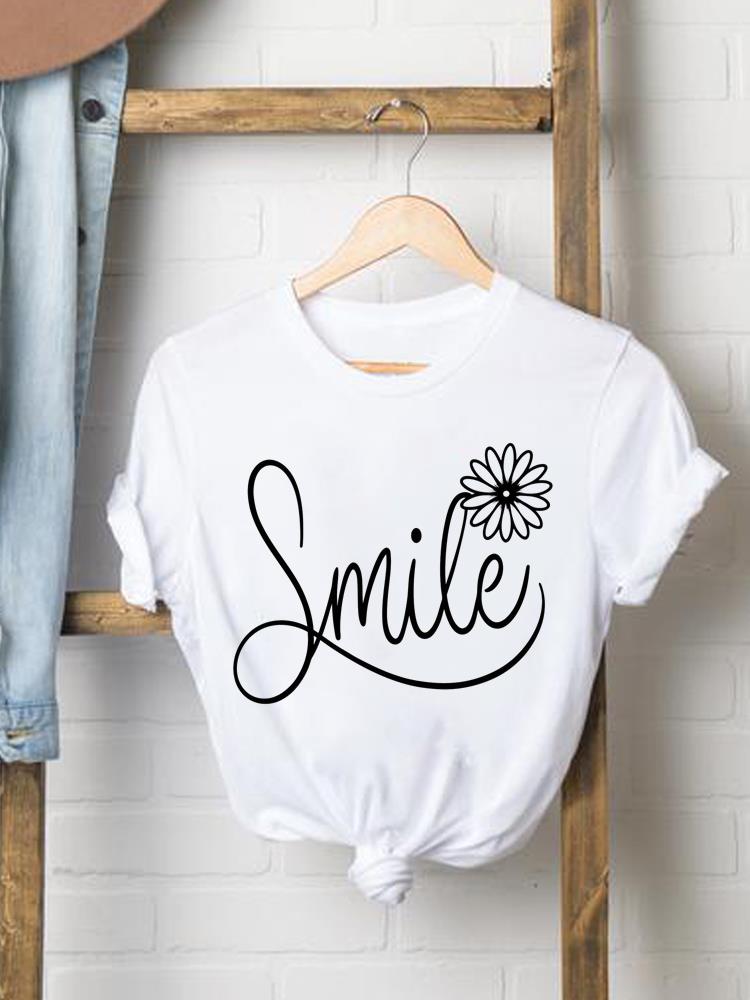 (Asian Size) Women Fashion Tee Top Clothing T Shirt Woman Print Female letter trend 90s flower Short Sleeve Graphic T-shirts