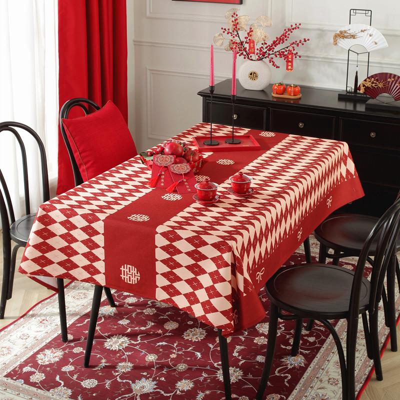 Polyester Printed Wedding Wedding Happy Character Red Festive Wedding Room Decoration Coffee Table Tablecloth Waterproof Dining Table Cloth
