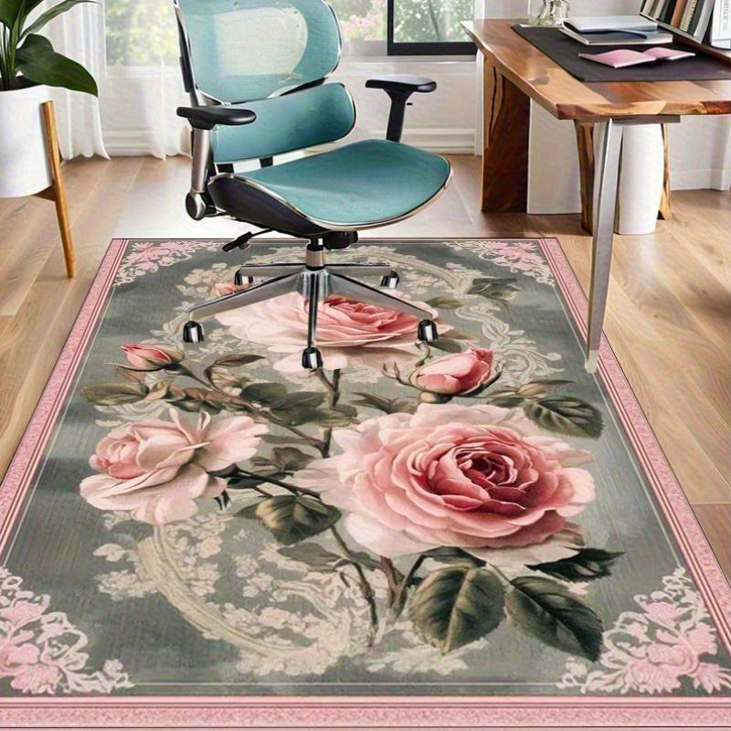Pink RoseFloral RugElegant Flower Pattern Carpet for Bedroom Romantic and Chic Home Decor Anti slip carpet can be machine washed