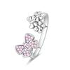 Fashion 925 Silver Color Rings Blue Zircon Butterfly Leaf Flower Irregularity Split Rings For Woman Fine Jewelry Gifts