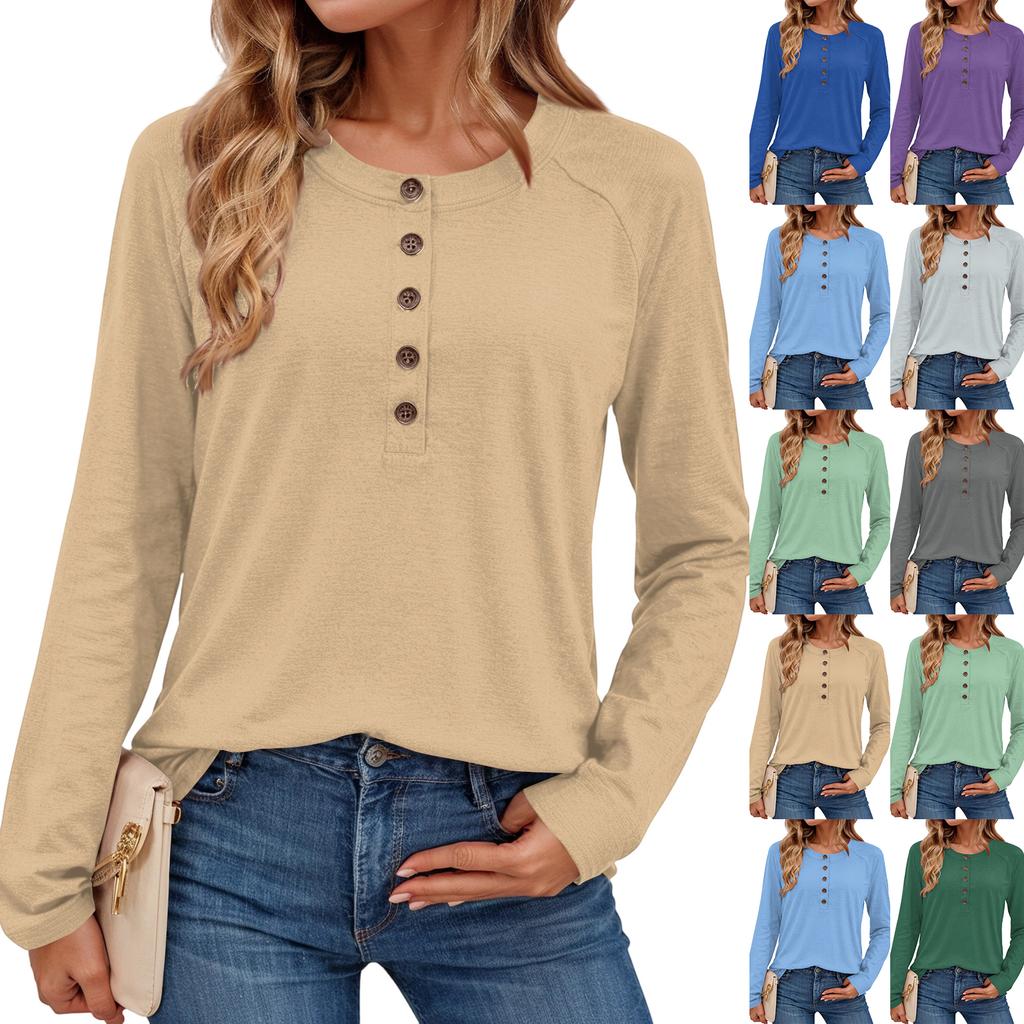 Women's Stylish Solid-color Round-neck Long-sleeved Top