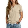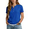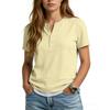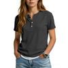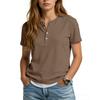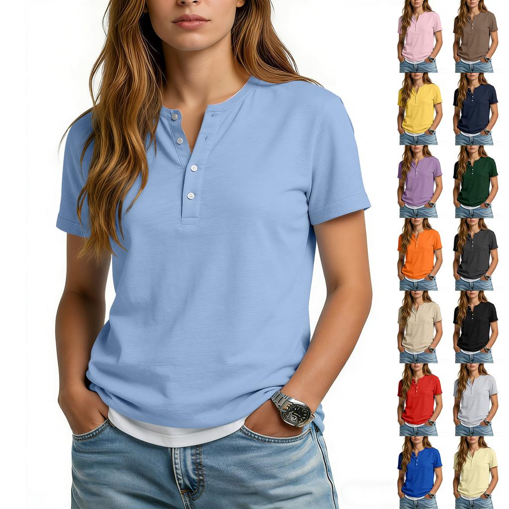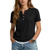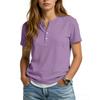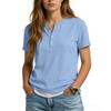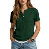 Dámské ležérní jednobarevné tričko s krátkým rukávem a výstřihem do V s ozdobnými knoflíky.