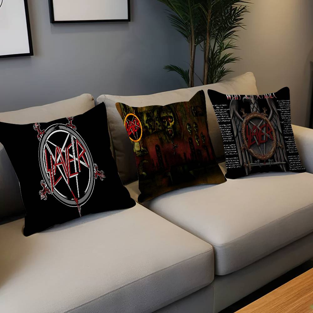 Rock S-Slayer Heavy Metal Band Pillow Covers Cartoon Sofa Decorative Home Double-sided Printing Short Plush Cute Cushion Cover