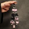 Luxusní náramek s přívěskem medvídka s mašlí s leopardím potiskem a diamanty, jednoduchý plyšový krátký řemínek na telefon ve stylu řetízku na telefon/sluchátka