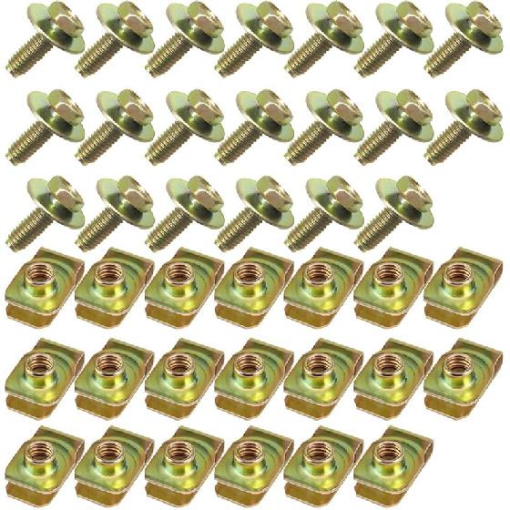 40PCS Car Body Bolts M6-1.0 & Extruded U-Nuts Clips Kit, Bumper Fenders Liner Push Retainer Fastener Kit For Engine Under Cover Undertray, Universal