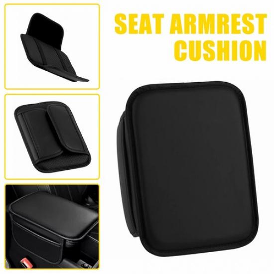 Black Leather Seat Cushion Armrest Protector Storage Pad Interior Car Accessory
