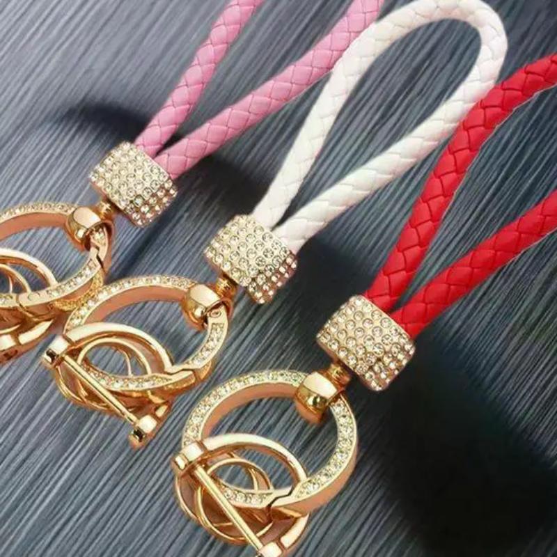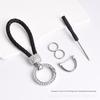 Handcrafted Braided Rope Keychain Sparkling Rhinestones - Stylish Monochrome Car Key Ring Fashion-Forward Accessory