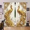 2 pieces of golden peacock design printed curtains, pole bag curtains, bedroom and living room, home decoration, room decoration