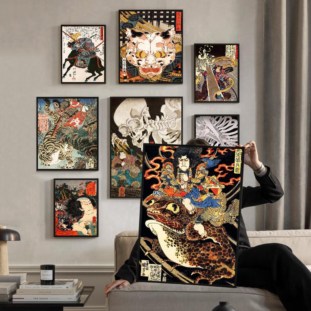 Vintage Japonské Umění Ukiyo-e DIY Samolepicí Plakát Luxusní Samolepka na Zeď pro Obývací Pokoj Bar Dekorace Zdi