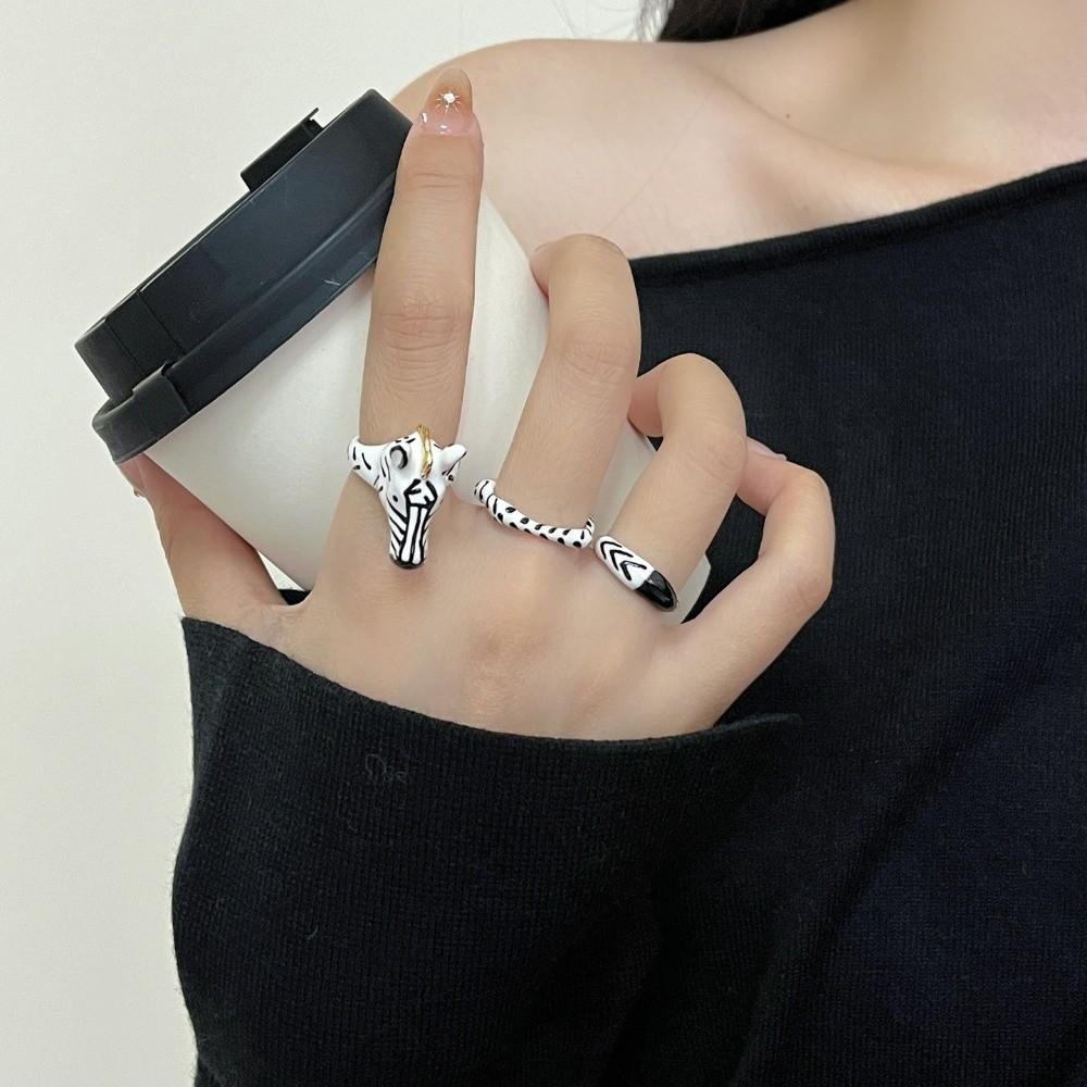 Pony Horse Cartoon Glaze Ring Delicate Opening Finger Ring Aesthetic Animal Horse Ring Set Lady