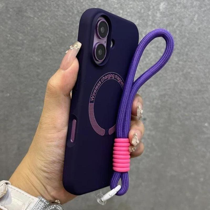 Wrist Strap Magnetic Phone Case For iPhone 17 15 14 11 12 13 16 Pro Max Air Liquid Silicone For Magsafe Lanyard Protector Cover
