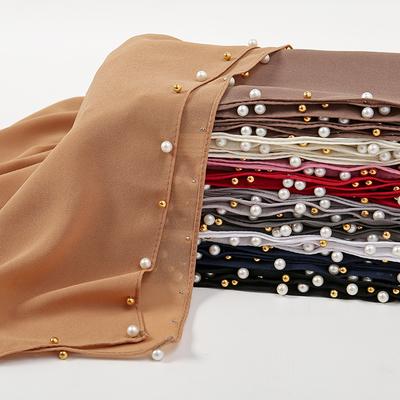 Zlatý Stříbrný Perlový Okraj Hidžáb Dámský Jednobarevný Šifonový Šátek Obyčejná Šála Muslimský Prémiový Džersej Šifonový Turbánek Šátek na Hlavu