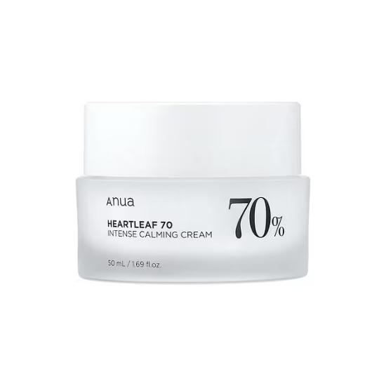 ANUA Heartleaf 70% Intense Calming Cream is a soothing moisturizer designed to calm irritated, sensitive, and stressed skin. Formulated with 70% heartleaf (Houttuynia Cordata) extract, this cream helps reduce redness, relieve discomfort, and support skin balance. The rich yet non-greasy texture delivers lasting hydration while reinforcing the moisture barrier, leaving skin calm, soft, and healthy-looking. Ideal for daily use on sensitive or reactive skin.