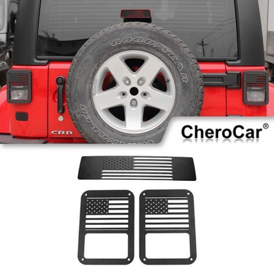 Tail Light Cover Guards & Third Brake Light Cover for Jeep Wrangler JK 2007-2018