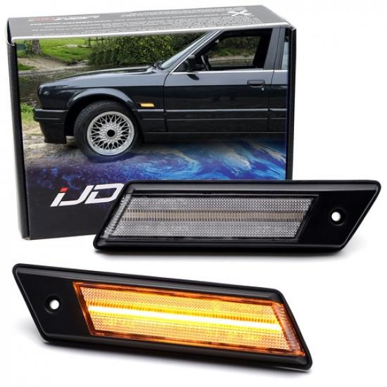 Interchange Part Number:Models), Series (Direct Fit For Euro/JDM Models, Require Mods For US, Marker Lights Compatible With BMW E30 E28 E24 E23 3 5 6 7, Euro-Spec Semi-Clear Lens Amber Full LED Front Fender Side