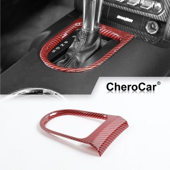 Red Carbon Fiber ABS Central Gear Shift Frame Trim Cover For Ford Mustang 2015+