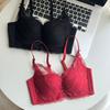 New Lace Modal Skin-friendly No Steel Rim Gathering Underwear Comfortable Small Breasts Show Big Bra Red Wedding Life
