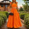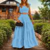 Letní nový sexy temperamentní jednobarevný maxi dvoudílný outfitový set šaty se špagetovými ramínky