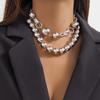 Sweet and cool geometric big bead set collar retro punk style imitation pearl short collarbone chain European and American beaded necklace