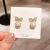S925 Silver Needle Sweet Versatile Unique Imitation Pearl Bow Stud Earrings Trendy Niche Design Sense Premium Earrings