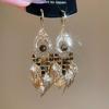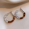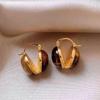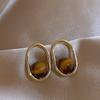 Silver Needle Tiger Eye Round Geometric Pendant Earrings - Retro Millard Style Studs with Unique Niche Design