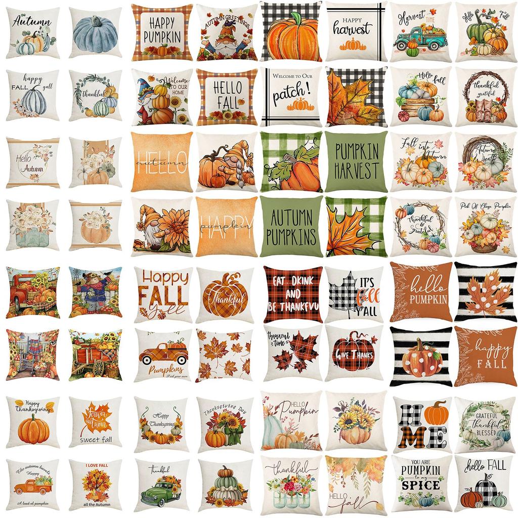 18x18 Fall Pillow Covers, Thanksgiving Decorative Throw Pillowcases, Maple Car Linen Throw Cushion Covers For Sofa Couch Home Decor, 4pcs