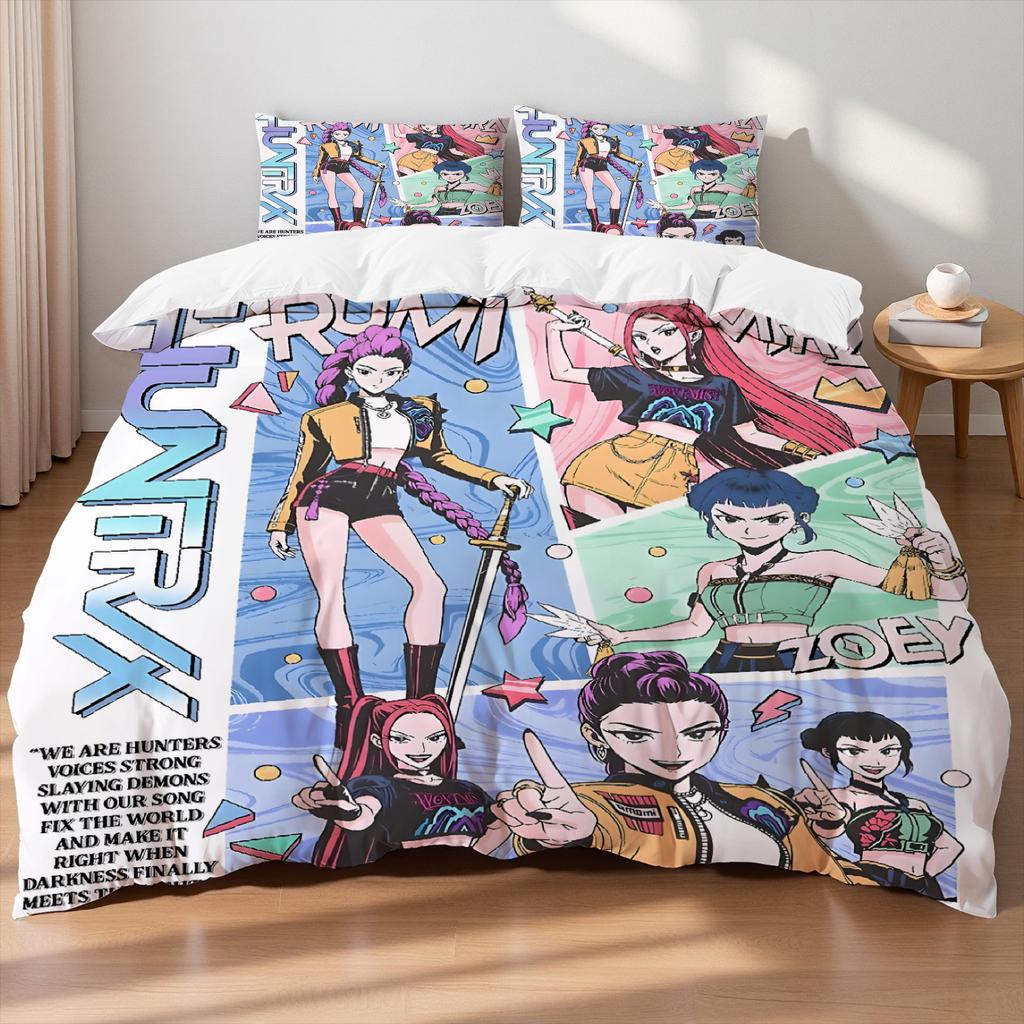KPOP Lovci démonů Ložní souprava Queen King Size EU Jednolůžko Přikrývka Povlak na přikrývku Sady s povlaky na polštáře Pro dívky K narozeninám