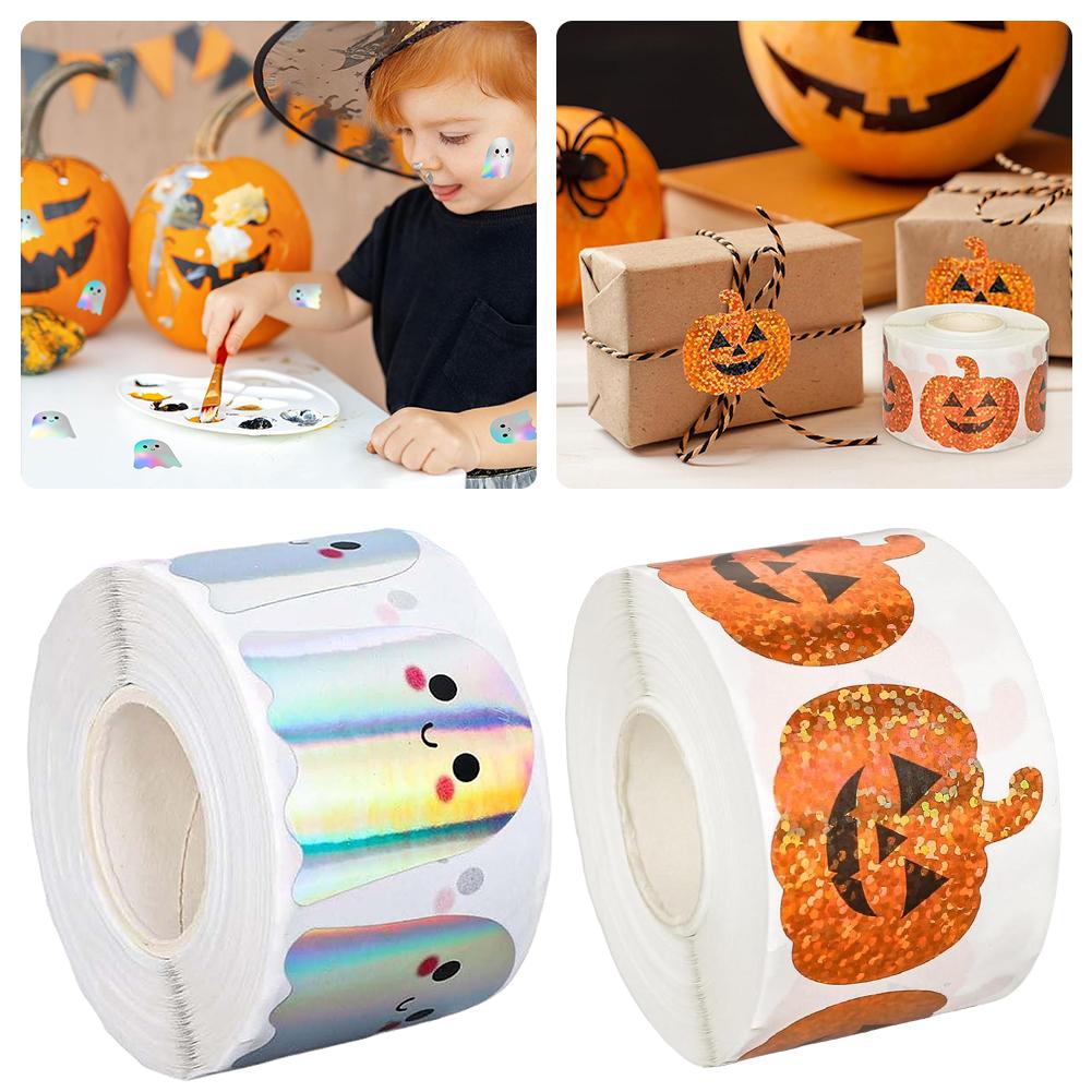 Waterproof Lasers Ghosts Stickers For Water Bottles Multifunctional Round Labels 500 Count Stickers For Halloween Party
