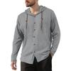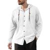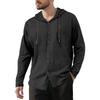 Pánská jednoduchá bavlněná a lněná ležérní volná prodyšná košile s dlouhým rukávem, jednobarevná, s kapucí