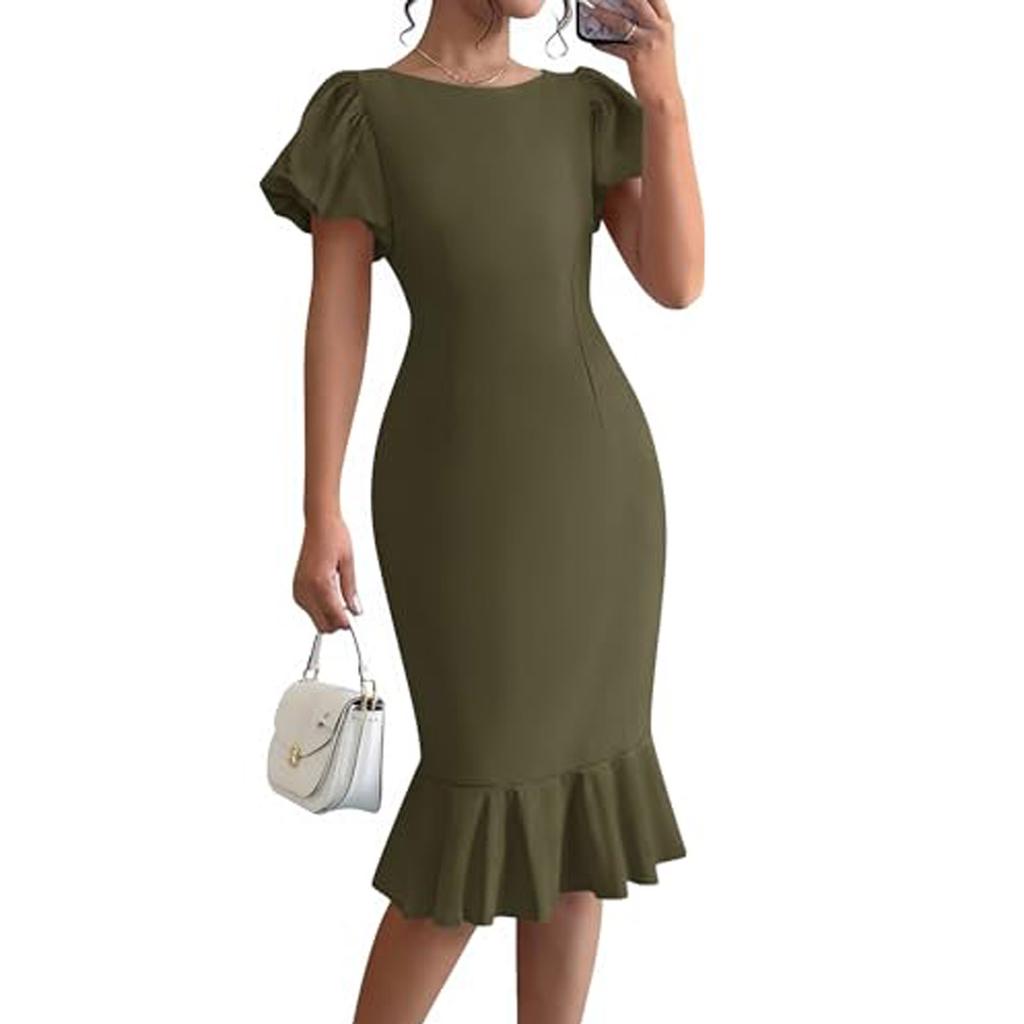 Women Formal Wedding Guest Cocktail Dresses 2026 Short Sleeve Ruffle Mermaid Work Elegant Dress