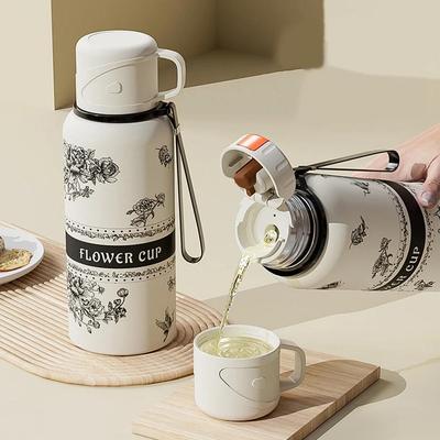 Stainless Steel Travel Mug with Filter Thermal Cup Sports Kettle Flower Pattern Thermos Bottle Car