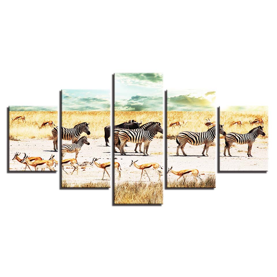 Modern Canvas Living Room Pictures Painting Wall Artwork 5 Panel Scorching Scorching African Zebra Goa HD Printed Modular Poster No Frame
