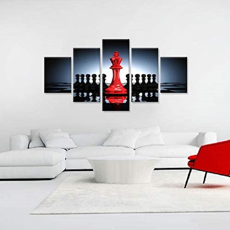 Black And Red King And Knight Chess 5 Pcs Canvas Picture Print Wall Art Canvas Painting Wall Decor for Living Room No Frame