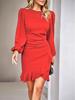 Přijměte romantické kouzlo s těmito elegantními šaty s nabíranými rukávy. S klasickým kulatým výstřihem a dramatickými, objemnými dlouhými rukávy se stahuje v pase pro lichotivou siluetu.. Středně dlouhá sukně je krásně zdobená poutavým asymetrickým volánkovým lemem, který dodává nádech hravého pohybu.. Perfektní pro sofistikované rande, zahradní párty nebo jakoukoli příležitost, kde chcete udělat stylový dojem.. Dostupné v několika klasických barvách včetně modré, vínově červené a černé, aby vyhovovaly vaší náladě.