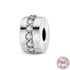 925 Silver Clasp CZ Pave Daisy Beads Stopper Clip Fit Original Bracelet Jewelry 1