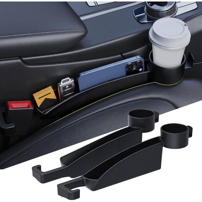 2-Piece Car Seat Storage Organizer, Upgraded Side Seat Filler Combines storage box, cup holder, and hook functions in one Fits b