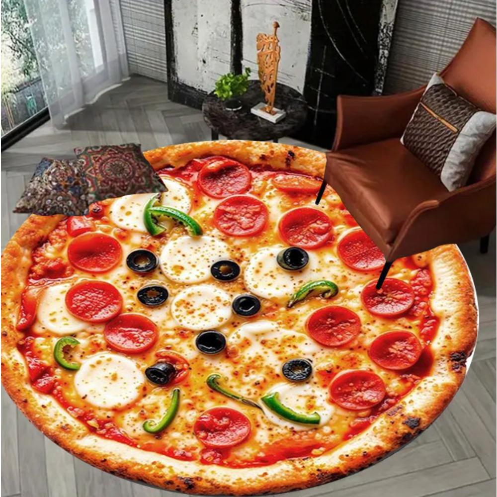 Delicious Pizza Pattern Round Carpet Mat Rug Food Design Home Decoration for Living Room Living Room Decoration Rugs for Bedroom