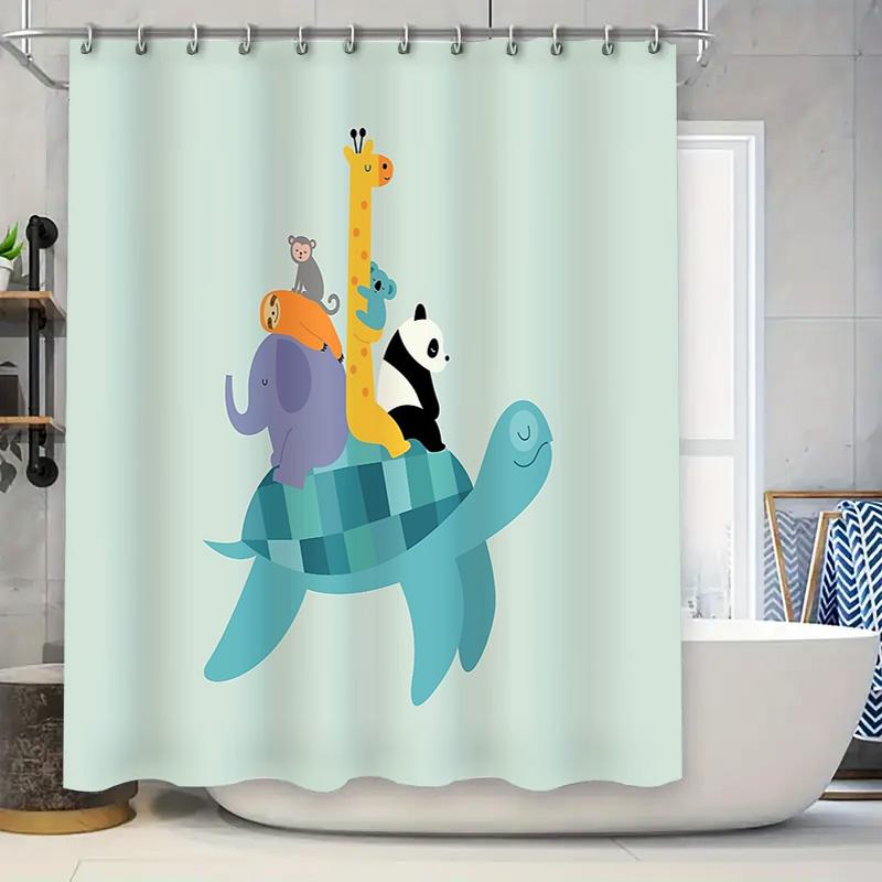 Cute Turtle Sea Animal Bathroom Shower Curtain Waterproof Marine Life Decor Ocean Vibes Coastal Home Textile Artistic Pattern