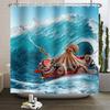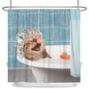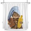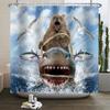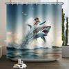 Hrdinský Velký bílý žralok s pistolí Kočka Vtipný sprchový závěs Pro kryt vany Kryt koupelny Koupání Extra velký Široký 12 ks háčků