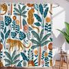 Boho Cheetah Shower Curtain,Tropical Leopard Wildlife Bath Curtain,Modern Pink Aesthetic Moon Phase Blue Floral Bathroom Curta