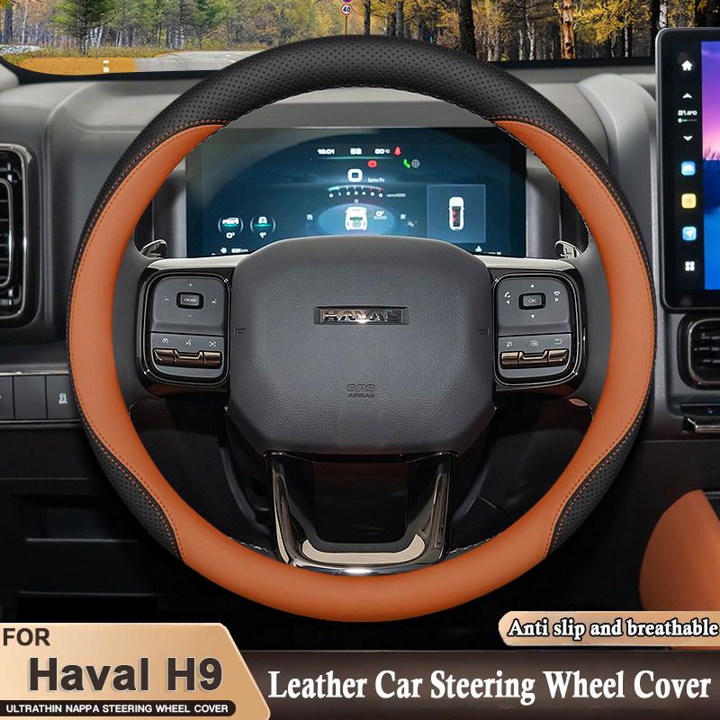 High Leather Braid on Car Steering Wheel Cover Wrap for Haval H9 2015 2016 2017 2018 2024 2025 Stylling