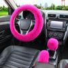 Artificial Rabbit Fur Car Steering Wheel Cover Warm Winter Car Handbrake Shift Cover Three-piece Set Heating Steering Wheel 38cm