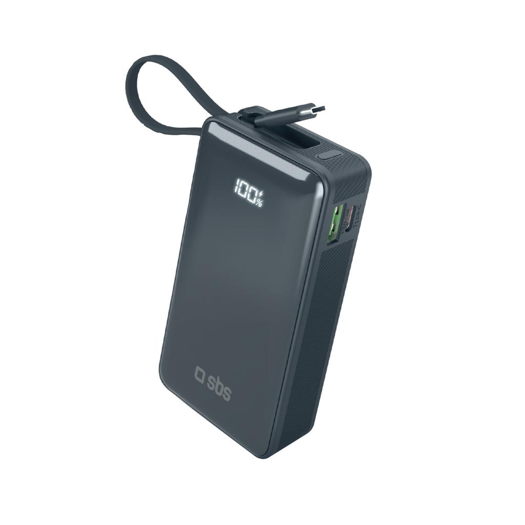 Powerbank 10000mAh USB-A USB-C z wyświetlaczem wbudowanym kablem USB-C 20W - ciemnoszary