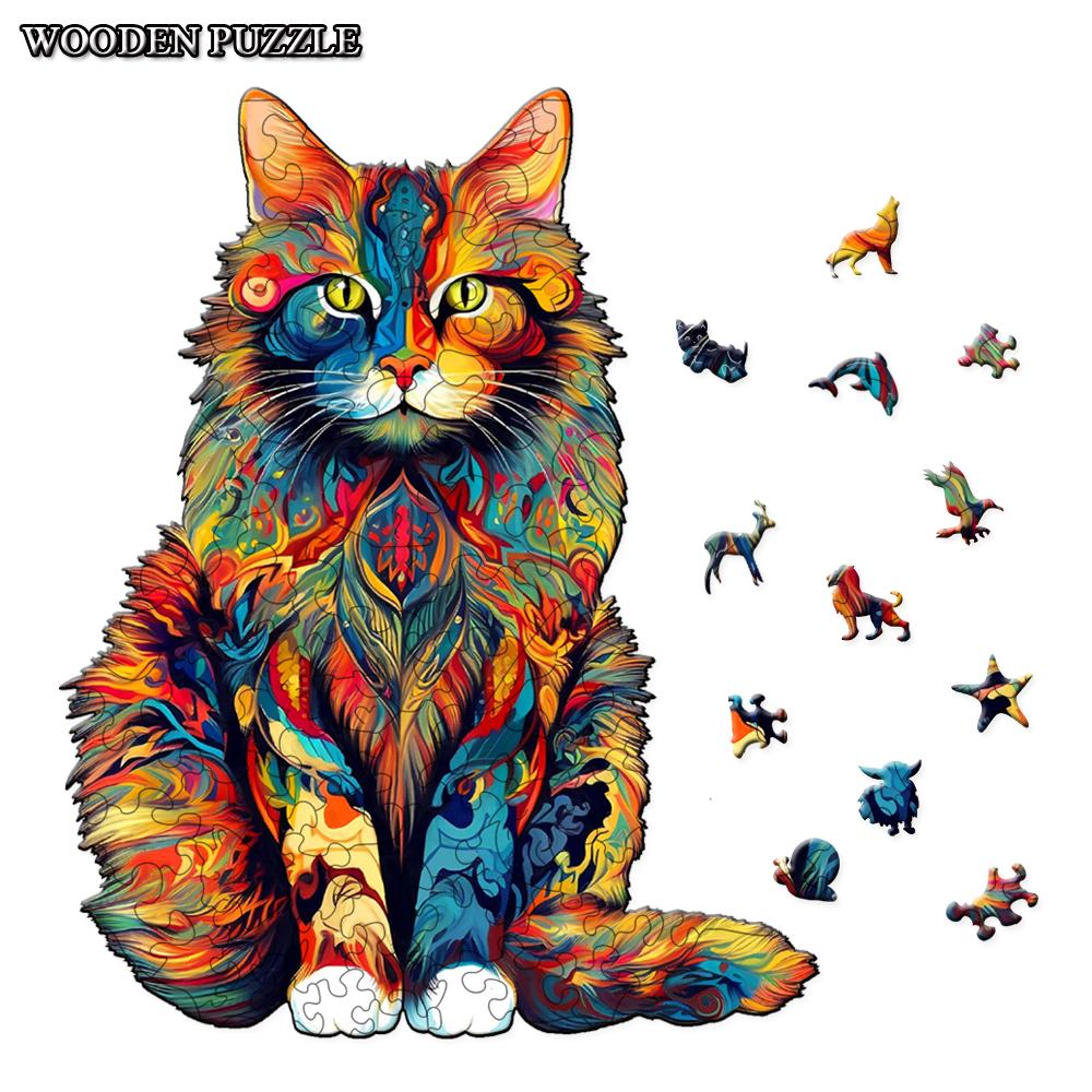 Color Changing Cat Wooden Puzzle Irregular Animal Shaped Wooden Puzzle High Difficulty Puzzle Puzzle Toy Birthday Christmas