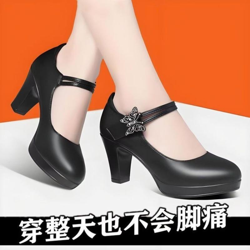 Shoe platform model body catwalk shoes women's high heels platform waterproof platform thick heel single shoes one-word buckle women's shoes