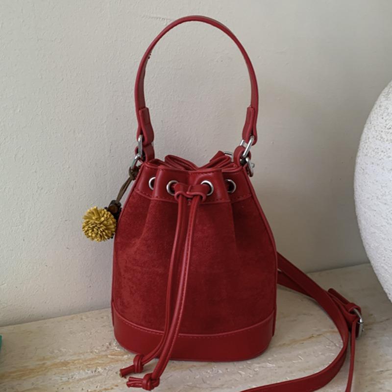 Stylish and simple contrasting color bucket bag women's autumn new shoulder messenger bag high value casual strap handbag